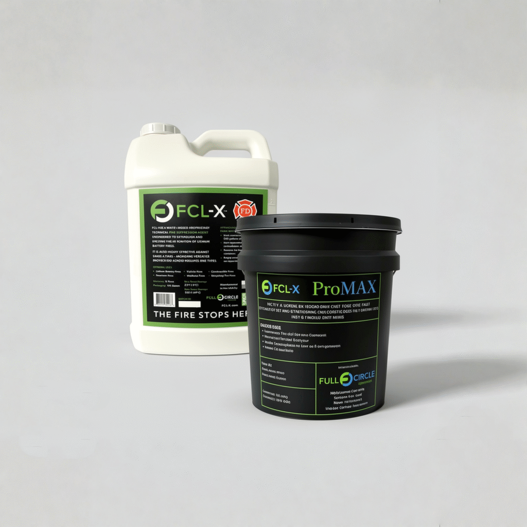 Full Circle Lithium has developed FCL-X – a specialized extinguishing agent – from the ground up, to tackle the growing challenge of extinguishing hazardous lithium-ion battery (LIB) fires. FCL-X has undergone rigorous internal and external testing – demonstrating exceptional cooling capabilities, reduced off-gassing, and prevention of reignition in LIB fires.